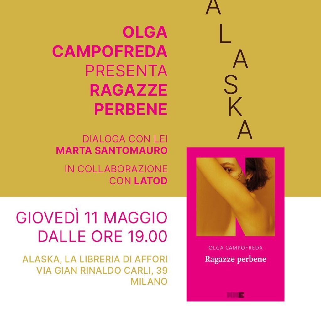 Olga Campofreda, autrice di “Ragazze per bene” dialoga con Marta Santomauro, dell’Associazione LATO D, presso la libreria Alaska